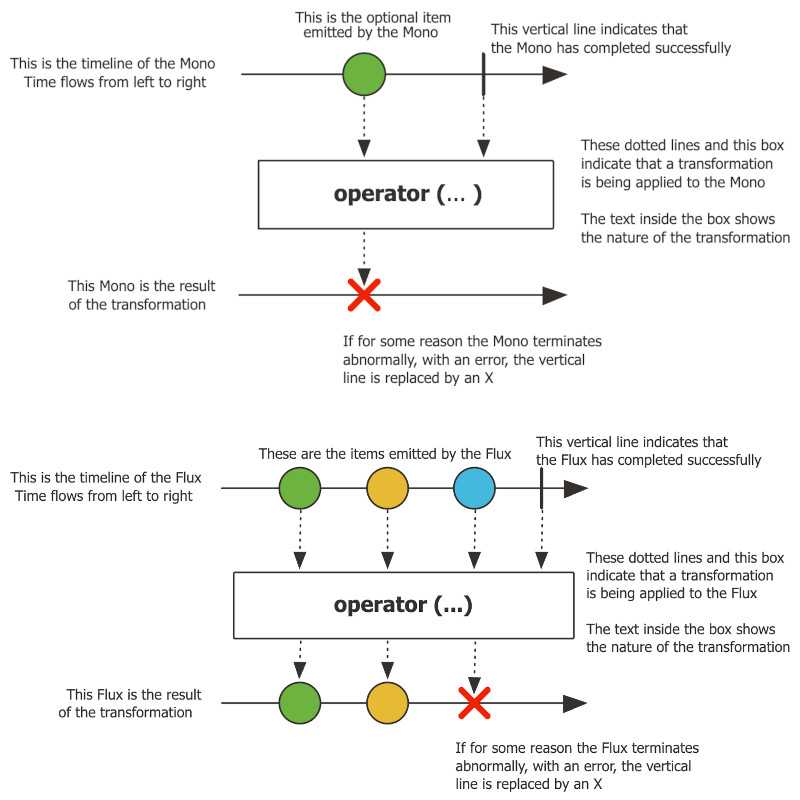 Flux<String> upperCaseFlux = flux.map(String::toUpperCase);Mono<String> combinedMono = Mono.zip(mono1, mono2, (data1, data2) -> data1 + " " + data2);